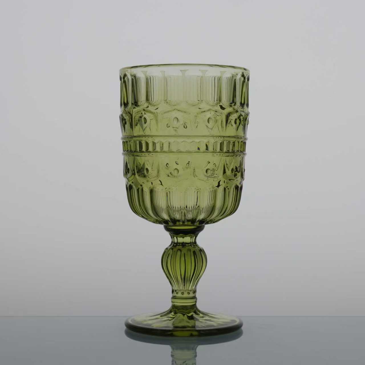 მწვანე მინის ჭიქა ბუნებრივ სტილში.